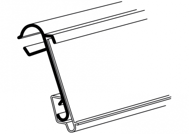 Vinklad hyllkantslist för trådhylla med utbytbar frontskiva(CF)